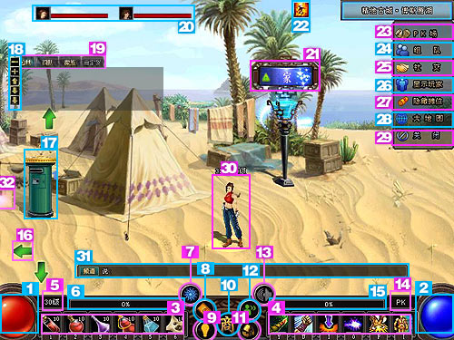 31、聊天輸入框:在此可以輸入您想聊天的內(nèi)容(按Enter打開(kāi)或關(guān)閉)