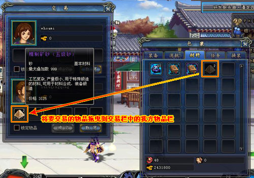 4、將要交易的物品拖曳到交易欄中的我方物品欄。