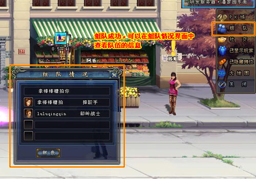 四、組隊(duì)成功,可以在組隊(duì)情況界面中查看隊(duì)伍的信息,在整體游戲界面上顯示整體隊(duì)伍的情況