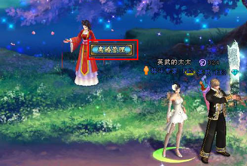 如果兩個(gè)人在一起不開(kāi)心,那么可以前去”緣生湖”找尋NPC—“紅娘”點(diǎn)擊”申請(qǐng)離婚”選項(xiàng),來(lái)進(jìn)行離婚,如圖: