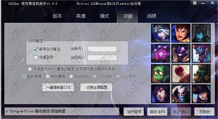 [5]后臺增強:增強版的后臺,可以最小化游戲以及隱藏游戲,后臺+內(nèi)存方式,勝率更高,但容易封號