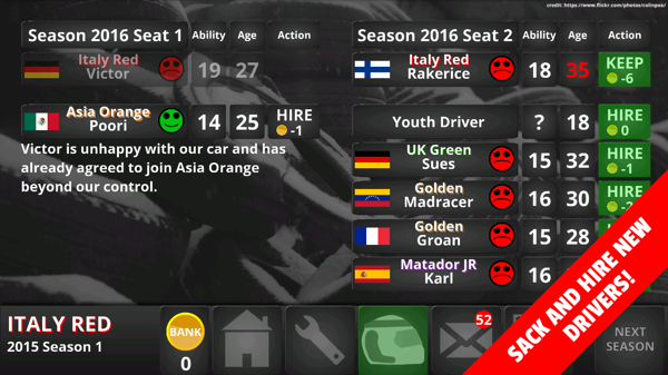 * 車手生命周期,在車手的生涯中,車手將會不斷提高至巔峰,然后逐漸退步,最終退役,并換上新車手