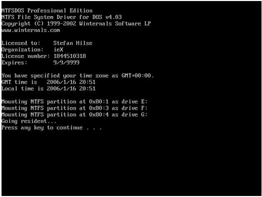 上圖提示已經(jīng)為三個(gè)NTFS分區(qū)分配了盤符∶E、F、G。我原來的前三個(gè)分區(qū)C、D、E現(xiàn)在分配盤符為:E、F、G。其實(shí)矮人DOS工具箱 V4.2在DOS下分配盤符的順序?yàn)椤孟确峙銯AT32分區(qū)∶我原東的F盤現(xiàn)在變?yōu)镃盤;跟接下來的盤符分配給內(nèi)存,內(nèi)存現(xiàn)在的盤符為D盤;接下來才將盤符分配給NTFS分區(qū),即我原來的前三個(gè)分區(qū)C、D、E現(xiàn)在分配盤符為:E、F、G。