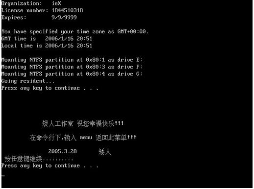 按任意鍵繼續(xù).......啟動(dòng)后出現(xiàn)如下圖所示。