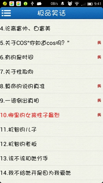 1.收錄笑話5000余篇,全部支持離線閱讀.無需連線,無需更新,沒有信號的時候也能閱讀.
