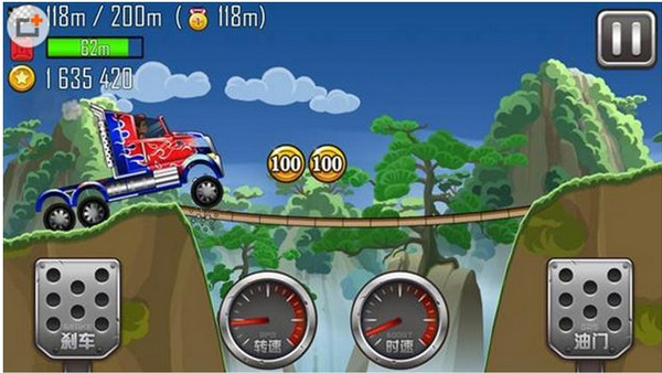 1、玩家點擊油門以及剎車,可以控制賽車的運行。2、其次玩家需要注意上下坡的角度問題,否則很容易因為重力翻車噢。