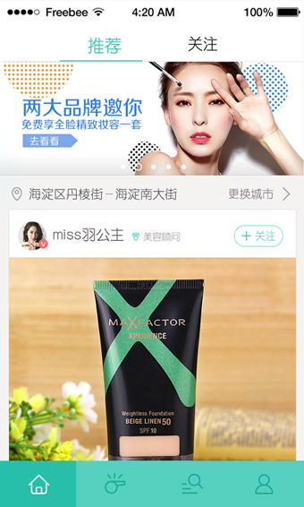 1.2關(guān)注:喜歡的美妞,貼心的美容顧問(wèn),點(diǎn)擊關(guān)注,隨時(shí)互動(dòng)
