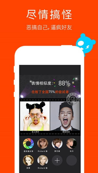 還有一大波逗比的明星表情等你模仿。把傲嬌的相似度發(fā)給朋友,挖掘身邊更多的逗比好友。