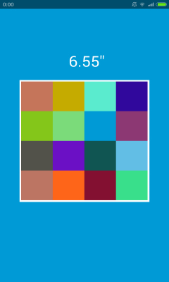 選擇界面游戲難度和模式進入;點擊開啟的游戲關(guān)卡進入畫面;玩法很簡單,點擊與背景色相同的格子即可消除;游戲中看誰時間最短,那么來挑戰(zhàn)吧!