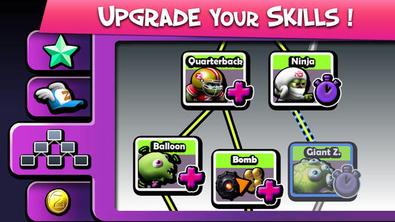 巨大僵尸會發(fā)出鐳射來消滅所有障礙物跟陷阱;UFO可以持續(xù)復(fù)制僵尸給玩家,不用吃人也可以增加僵尸數(shù)目;橄欖球隊則是帶著勇往直前的氣勢來撞飛所有車輛;忍者可以施展相當(dāng)方便的二段跳躍;舞龍形態(tài)跳起落下的時候連續(xù)點擊屏幕可以進(jìn)行滑行等等。