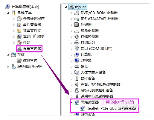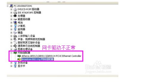 不正常的網卡驅動會在網卡上出現黃色嘆號或沒有檢測到網卡。