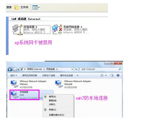 查看網絡連接中的本地連接是否被禁用。不同的系統(tǒng),本地連接的界面不太一樣,但原理是一樣的,查看一下本地連接如果禁用,則右鍵單擊本地連接,選擇啟用即可。(下面是各種系統(tǒng)的本地連接界面)