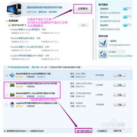 使用驅動精靈等軟件,檢測并下載安裝網卡驅動。