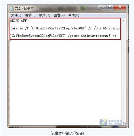 在記事本“文件”標簽中選擇“另存為”,將代碼另存為711.bat批處理文件。