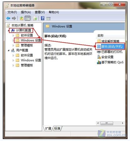 依次點擊“計算機配置”-“Windows設置”-“腳本(啟動/關機)”。