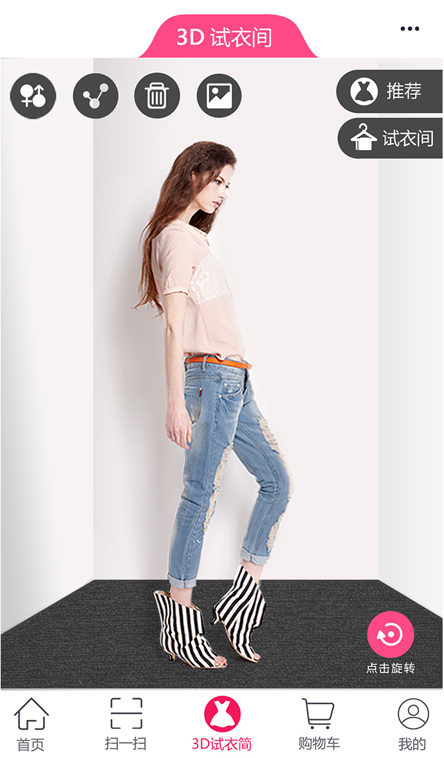 實(shí)體店逛街時(shí)可通過(guò)掃描服裝吊牌了解服裝信息、試穿、快速購(gòu)買等