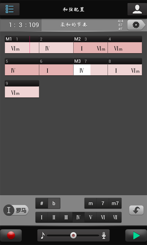 A:從菜單進(jìn)入和弦配置頁面,選中小節(jié),點(diǎn)擊你想更換的和弦,然后在下邊的和弦列表中選擇您想要的和弦級數(shù)和類型。