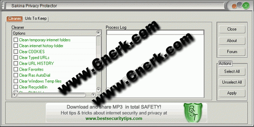 Sakina Privacy Protector 4.1 英文版 功能強(qiáng)大的安全軟件 Sakina Privacy Protector是一款功能強(qiáng)大的安全軟件,可以輕松地清理掉上網(wǎng)痕跡,保護(hù)個(gè)人隱私不被泄露。它使用最新的清除技術(shù),使得刪除數(shù)據(jù)不可恢復(fù);比瀏覽器自帶的刪除功能強(qiáng)大且安全