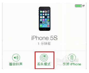 7、下面菜單用手指輕觸動(dòng),即可出現(xiàn)一個(gè)菜單,你可以對(duì)這個(gè)設(shè)備進(jìn)行“播放聲音”,“丟失模式”,抹掉iphone操作!