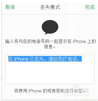 15、繼續(xù)打字,可以輸入你想給不小心撿到 iPhone 的人想說(shuō)的話,點(diǎn)擊右上角“完成”即可;