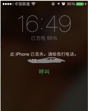 教程完成,下面一起看看“丟失模式”開啟后iPhone界面是什么樣子: