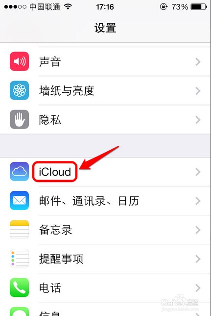 1、打開“設(shè)置”菜單,下滑,選擇"iCloud"