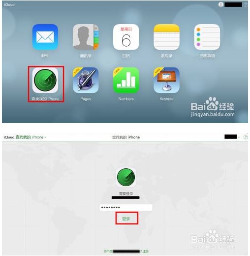 8、若您的iphone不幸丟失,您也可以利用網(wǎng)頁(yè)登錄iCloud來(lái)操作查找iphone,你需要做的是:第一時(shí)間用電腦登陸蘋果 icloud 官網(wǎng)(www.icloud.com),輸入你當(dāng)時(shí)設(shè)置的 iCloud 賬戶和密碼登陸