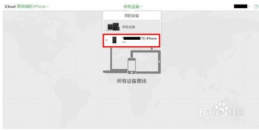 10、然后 icloud 會(huì)根據(jù)手機(jī)的定位信息進(jìn)行搜索找到 iPhone 的位置,在“所有設(shè)備”里選擇需找回的設(shè)備;