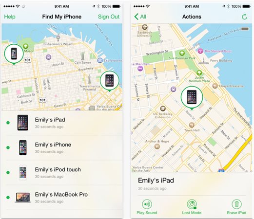 如果 iPhone、iPad、iPod touch 或 Mac 找不到了,用戶可以用 查找我的iphone App 使用其他 iOS 設(shè)備找到并保護(hù)數(shù)據(jù)。用戶只需在另一個(gè) iOS 設(shè)備上安裝此查找我的iphone App,打開它并使用用戶的 Apple ID 登錄。 查找我的iphone 將會(huì)幫助用戶在地圖上找到丟失的設(shè)備、播放聲音、顯示信息、遠(yuǎn)程鎖住設(shè)備、或者刪除其中的所有數(shù)據(jù)。