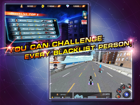 第二,引入挑戰(zhàn)模式,與黑名單BOSS對決。如果您有足夠的實(shí)力,那么跟黑名單的BOSS來一場吧。只要打敗他,挑戰(zhàn)獎勵直接歸你,甚至他專屬摩托就是你的。