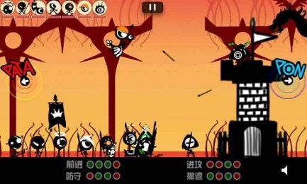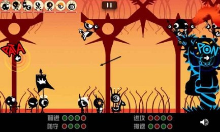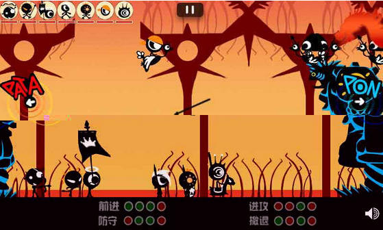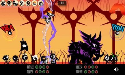 游戲包括:前進,進攻,防守和撤退四個方面;玩家可以按照這這些順序敲出的響聲可以控制角色進行戰(zhàn)斗。