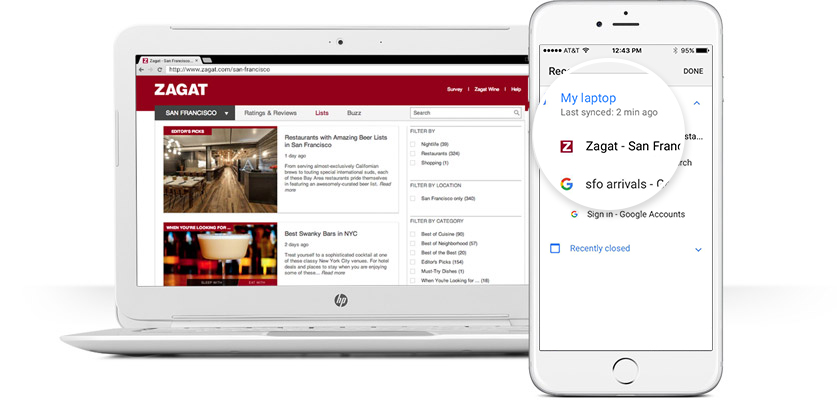 Chrome 可將您在計算機上打開的標簽頁、保存的書簽和最近搜索過的內(nèi)容同步到手機或平板電腦上,反之亦然。這意味著您可將自己在 Chrome 中的內(nèi)容和設(shè)置同步到所有的設(shè)備上。只需登錄您的其他設(shè)備即可開始同步。