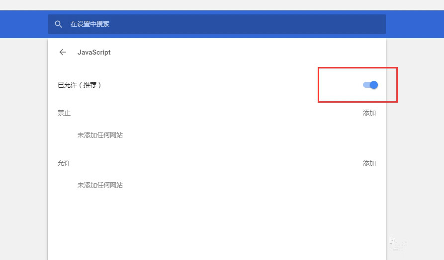 在“JavaScript”部分,選中允許所有網(wǎng)站運行 JavaScript(推薦)。