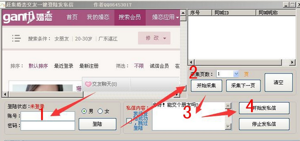 3、使用過程,需要先登陸賬號,進行采集同城好友的ID,再進行發(fā)送私信!