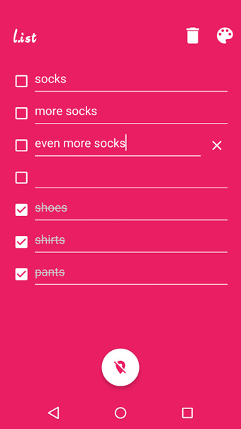 極簡(jiǎn)清單應(yīng)用十分簡(jiǎn)潔。你在這個(gè)應(yīng)用里只能列個(gè)列表,而且只有一個(gè)列表。你可以由此確定列表上的上的事項(xiàng)是否完成。你可以用它來(lái)提醒你在購(gòu)物的時(shí)候是否購(gòu)買了所有需要的東西。當(dāng)你完成的時(shí)候,只要清空列表然后重新開(kāi)始。