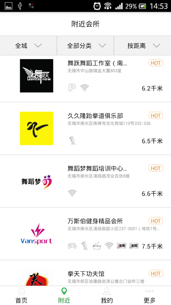輻射用戶所在地全城的會所,可根據(jù)距選擇離進行篩選,為健身而出行,就是要方便快捷!