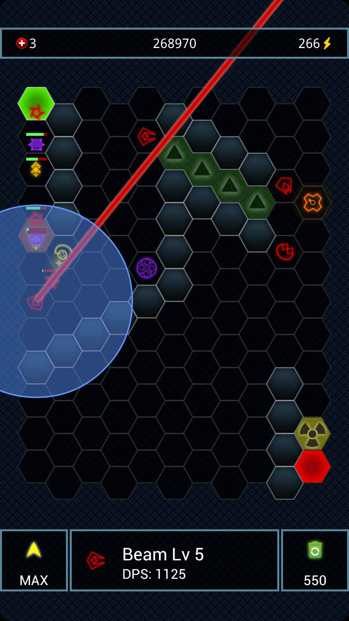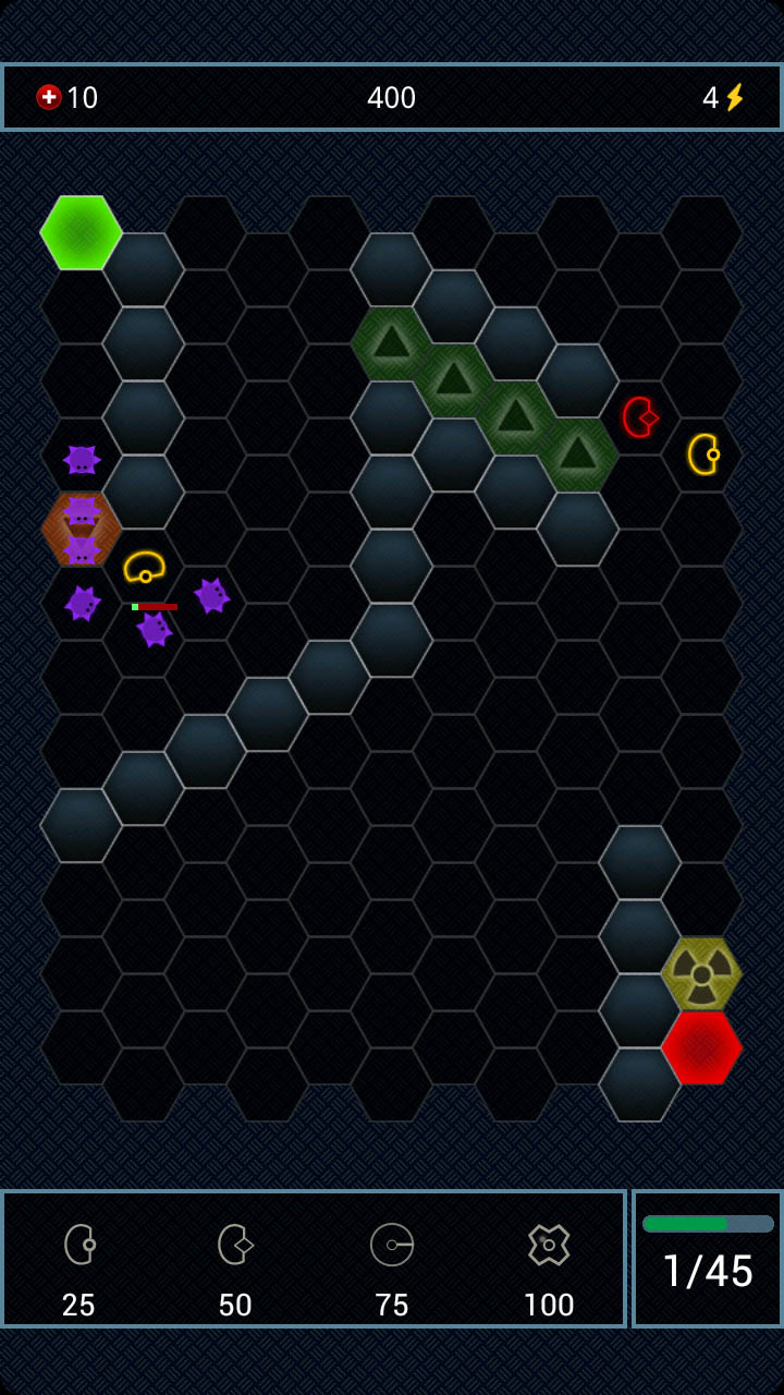 你的任務(wù)是摧毀他們,阻止他們從綠色區(qū)域移動(dòng)到紅色區(qū)域,你可以開(kāi)始下一波的魔物的襲擊,開(kāi)關(guān)在屏幕右下角。放置防御塔三原則: