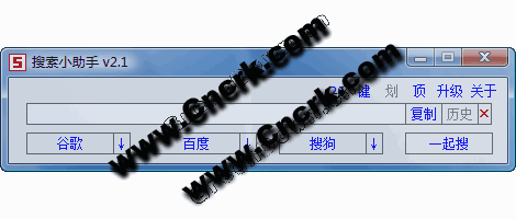 程序?yàn)榘胪该餍〈翱冢脩粼谖谋究蜴I入文字后可選谷歌、百度或搜狗搜索(程序呈非活動(dòng)狀態(tài)10秒后自動(dòng)最小化),此為“直輸模式”。用戶還可右鍵點(diǎn)擊程序托盤選“剪貼板監(jiān)控模式”,此時(shí)任何觸發(fā)剪貼板內(nèi)容變化的操作都可將最新的剪貼板內(nèi)容(只支持文本)自動(dòng)送至檢索框,程序窗口自動(dòng)貼近鼠標(biāo)當(dāng)前位置,用戶可選谷歌、百度或搜狗搜索,此模式同時(shí)兼容“直輸模式”,非活動(dòng)狀態(tài)時(shí)亦自動(dòng)最小化。