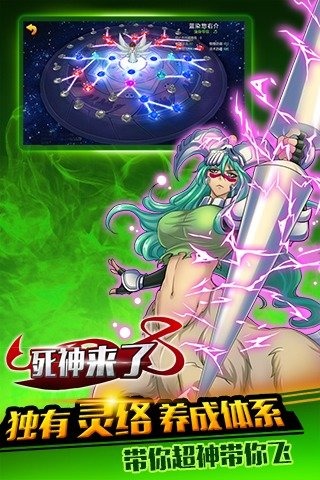 《死神來(lái)了》是以知名日漫《BLEACH》故事為藍(lán)本的3DRPG卡牌游戲,玩家在游戲中可以收集百余種《BLEACH》中的熱門角色,玩家可以隨意搭配、培養(yǎng)并使用他們來(lái)戰(zhàn)斗,從而推動(dòng)整個(gè)游戲故事的進(jìn)行。