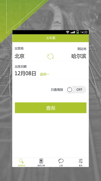 提供全國火車票的在線查詢和預(yù)訂服務(wù),與鐵路官方數(shù)據(jù)實時同步,為用戶提供方便、一流的火車出行服務(wù)。(預(yù)訂成功后短信及時通知,更有發(fā)車前溫馨提示,到站地天氣提醒服務(wù))【軟件特點】