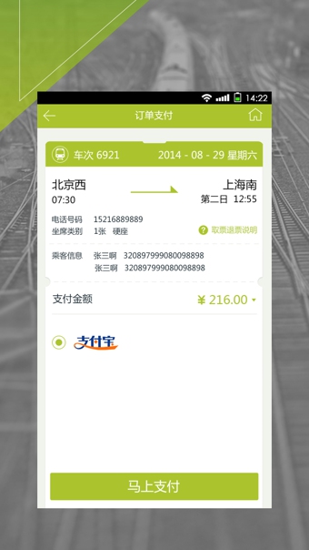 1、無需注冊,一鍵下單,真正實現(xiàn)1分鐘內(nèi)火車票快速預(yù)訂;2、完善的及時客服咨詢體系,直接溝通,讓您的售前、售后一樣放心;