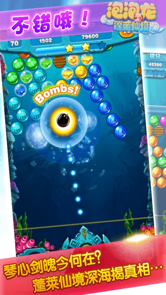 泡泡龍蓬萊仙境是一款創(chuàng)新型的泡泡龍游戲。手中執(zhí)劍方能保護(hù)珍惜之人,數(shù)千年的宿命與恩怨,終將了結(jié)于蓬萊海底……創(chuàng)新的泡泡龍游戲,融入了古劍的新穎活力。泡泡龍蓬萊仙境玩法獨(dú)特,跌宕起伏,動(dòng)人唯美,通關(guān)爽快,令人迷戀不已。玩一次,你就會愛上一輩子。每天來玩都送金幣,焚寂/玉衡輕松拿,體力自動(dòng)恢復(fù),擊敗關(guān)卡BOSS獎(jiǎng)勵(lì)更豐富,2014年末鉅獻(xiàn),你值得擁有!