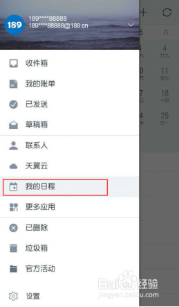 先在本站下載【189郵箱】,登錄注冊(cè)后,從郵件列表進(jìn)入“我的日程”