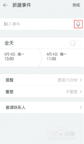 新建日程支持語(yǔ)音錄入,點(diǎn)擊“麥克風(fēng)”圖標(biāo)即可進(jìn)行。