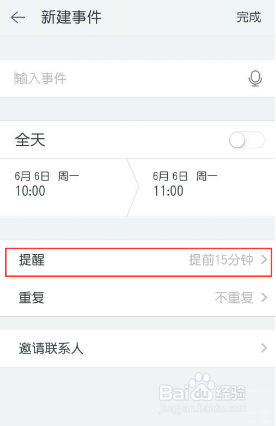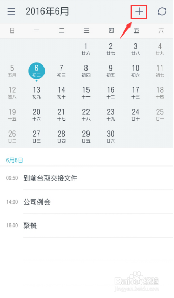 點(diǎn)擊“+”號(hào),添加新建日程事件。