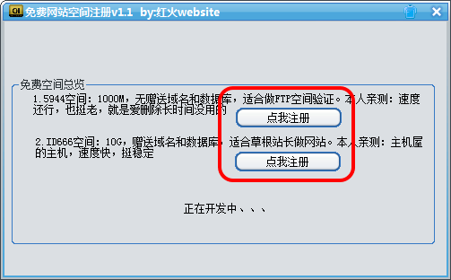 免費網(wǎng)站空間注冊軟件下載 1.1 綠色版 免費網(wǎng)站空間注冊軟件是一款免費綠色的網(wǎng)站空間注冊小軟件。該軟件不僅非常小巧,界面還挺簡單,可以幫助用戶快速方便的注冊5944和ID666免費空間。
