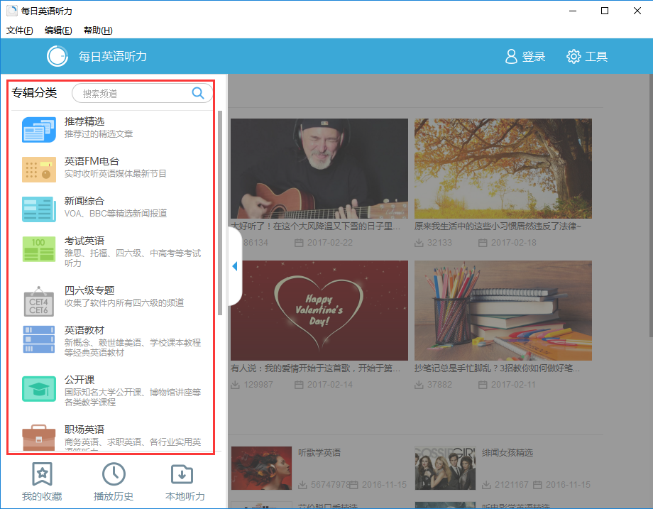 日推薦 每周精選每天推薦最新最熱的英語資源, 每周由編輯為您挑選閱讀資源。 此外,軟件還在專輯分類中提供了豐富的頻道,任您訂閱。