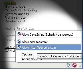 您可以啟用JavaScript/ Java的執(zhí)行上的NoScript的狀態(tài)欄圖標(biāo)(看圖片),或無狀態(tài)欄,在彈出窗口的操作更簡單,使用上下文菜單,用一個簡單的左鍵點擊您信任的網(wǎng)站。