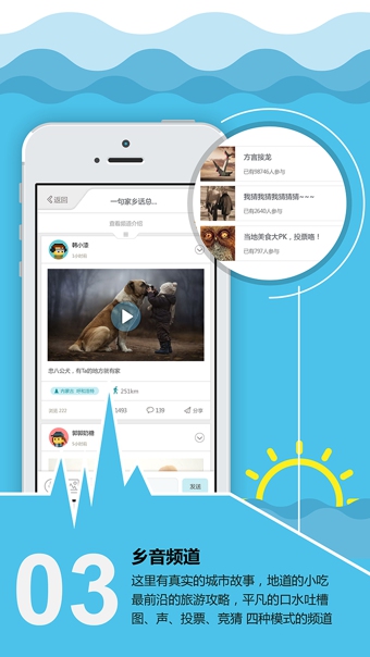 【鄉(xiāng)音頻道】這里有最真實的城市故事,最地道的小吃,最前沿的旅游攻略,最平凡的口水吐槽,你可以創(chuàng)建圖文、聲、投票、競猜 四種模式的頻道,與朋友一起品味人生的酸甜苦辣。