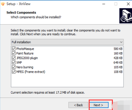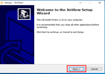 1、首先在本站下載XnView中文版安裝包,解壓后得到exe安裝程序,雙擊后xnview就會(huì)開(kāi)始出現(xiàn)安裝程序的界面。在下圖中,點(diǎn)擊底部中間的“NEXT”。